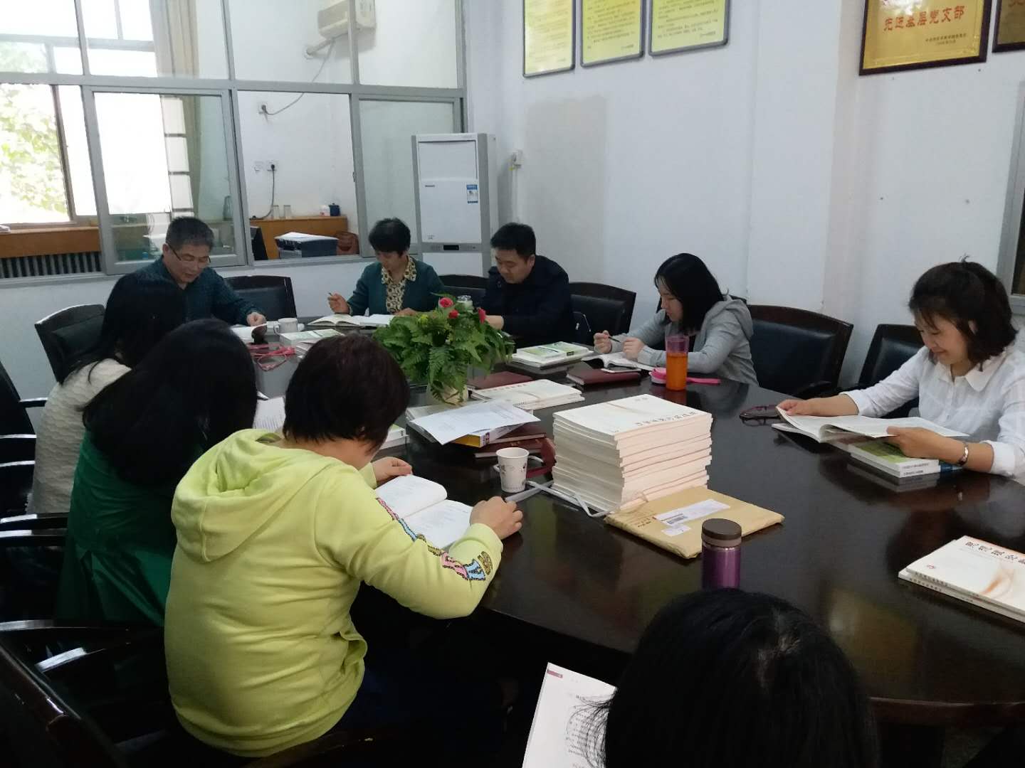 2018年4月18日下午,思政部组织全体教师进行教学研讨活动。教学研讨分为两组进行,“基础”教研室在其教研室办公室举行,其余三个教研室在图书馆资料室举行,思政部主任秋实先后参加了两组的研讨活动。大家根据各门课程的具体情况,对2018版新教材与旧教材的变化进行了比较,梳理了新教材的逻辑结构,重点讨论新教材的讲授与之前的教学如何衔接等问题。这次教学研讨活动有助于思政部教师深刻理解和科学使用2018版新教材,为做好十九大精神和习近平新时代中国特色社会主义思想进教材、进课堂、进学生头脑工作奠定了基础。